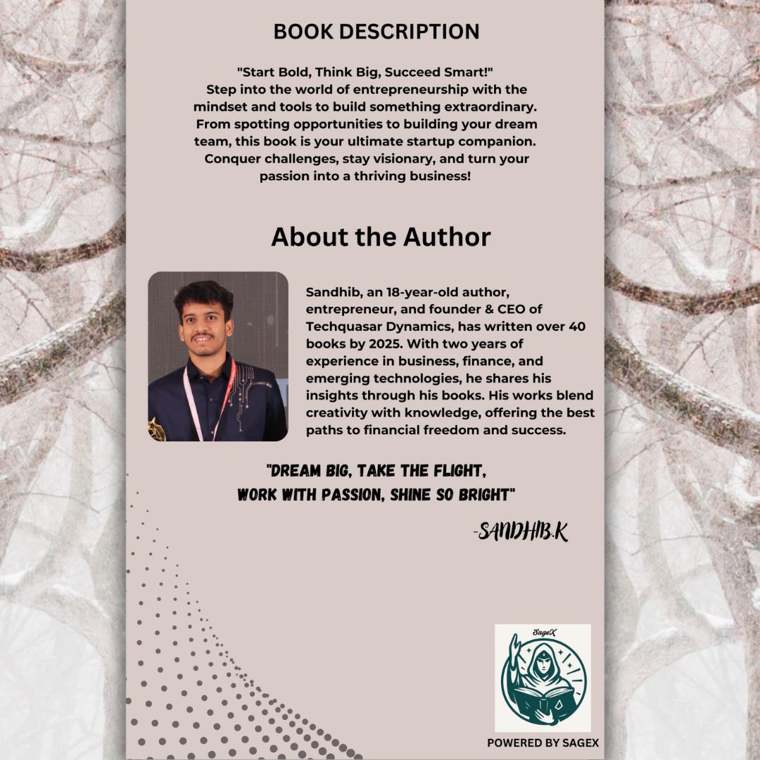 + Free ShippingStart bold, think big, and succeed smart! This inspiring guide is your ultimate startup companion — packed with insights to help you spot opportunities, overcome challenges, and bring your vision to life. Learn how to build a winning team, stay resilient, and turn passion into profit. Perfect for aspiring entrepreneurs ready to build something extraordinary.