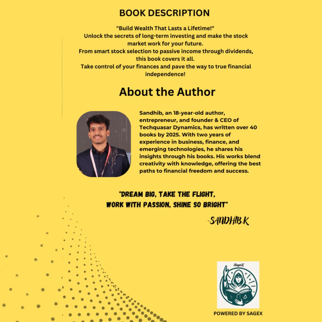 Discover the keys to long-term investing success with this easy-to-follow guide. Learn how to choose the right stocks, build a strong portfolio, and earn passive income through dividends. Whether you’re a beginner or looking to strengthen your strategy, this book empowers you to take control of your money and achieve true financial independence.